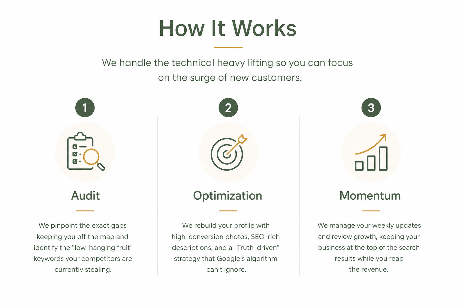 Google isn't a microwave; it’s a slow cooker. While some "quick wins" happen in the first 30 days, real momentum usually hits around the 90-day mark. We’re building an asset that lasts, not a temporary spike.